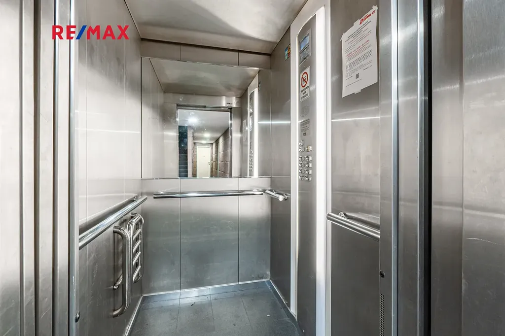Součástí nájmu je parkovací stání v garáži v suterénu domu.