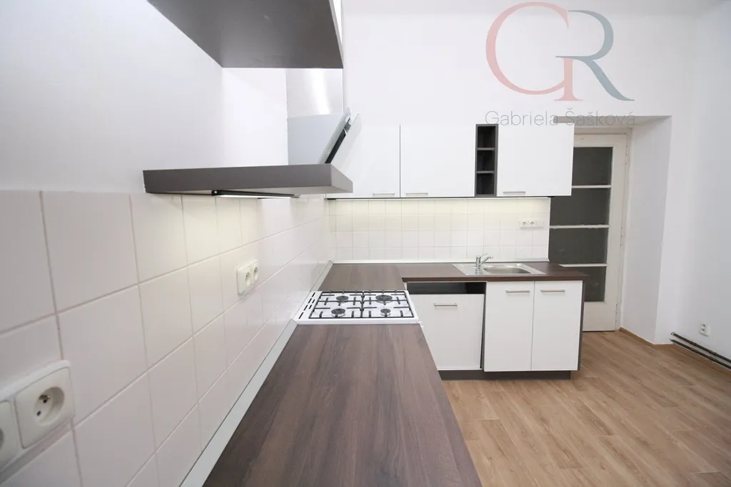 Nová kuchyňská linka je vybavena plynovým sporákem, digestoří a je zde i příprava na myčku (myčka není součástí vybavení).