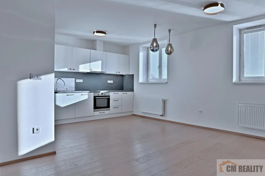 Srdcem bytu je prostorný obývací pokoj s kuchyňským koutem. Kuchyňská linka je plně vybavená: elektrická trouba, indukční varná deska, myčka, vestavná lednice, digestoř.