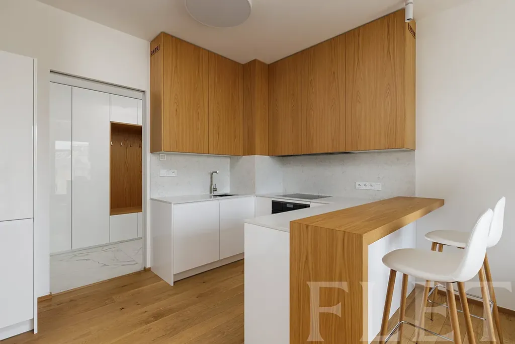 Bydlení zde není jen o prostoru, ale o zážitku. Byt je navržen s důrazem na detail a kvalitní materiály – dřevěné podlahy, francouzská okna s trojskly, klimatizace, rekuperace vzduchu, vestavěný nábytek na míru, elegantní koupelna s pračkou se sušičkou a toaletou s bidetovou sprchou. Vzdušný obývací prostor s plně vybaveným kuchyňským koutem zve k odpočinku i vaření, ložnice poskytuje klid a soukromí. Nechybí lodžie s výhledem do tichého vnitrobloku – ideální místo pro ranní kávu nebo večerní sklenku vína.