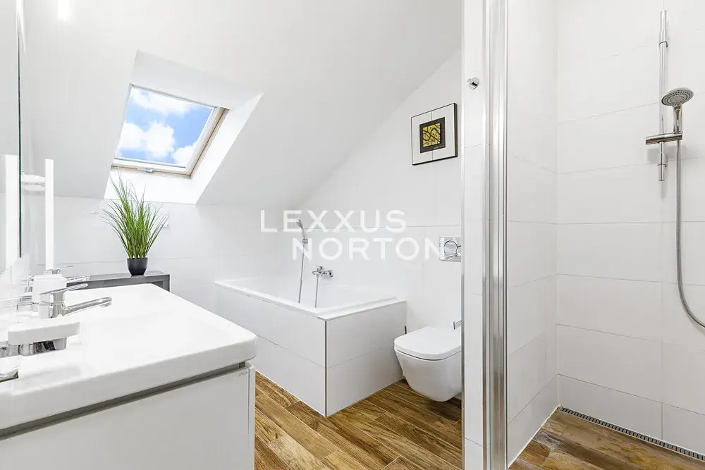 Nabízíme moderní řadový dům o dispozici 4+kk se zahradou, terasou a dvěma parkovacími místy, který poskytuje komfortní bydlení v klidné obci Stehelčeves s výbornou dostupností do Prahy. Dům je součástí architektonicky výjimečného projektu Anglický resort, charakteristického cihlovými fasádami inspirovanými tradičním anglickým stylem a byl dokončený v roce 2014.