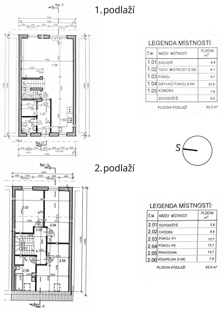 Ve druhém podlaží jsou tři samostatné pokoje a velkorysá koupelna vybavená vanou, sprchovým koutem a toaletou.