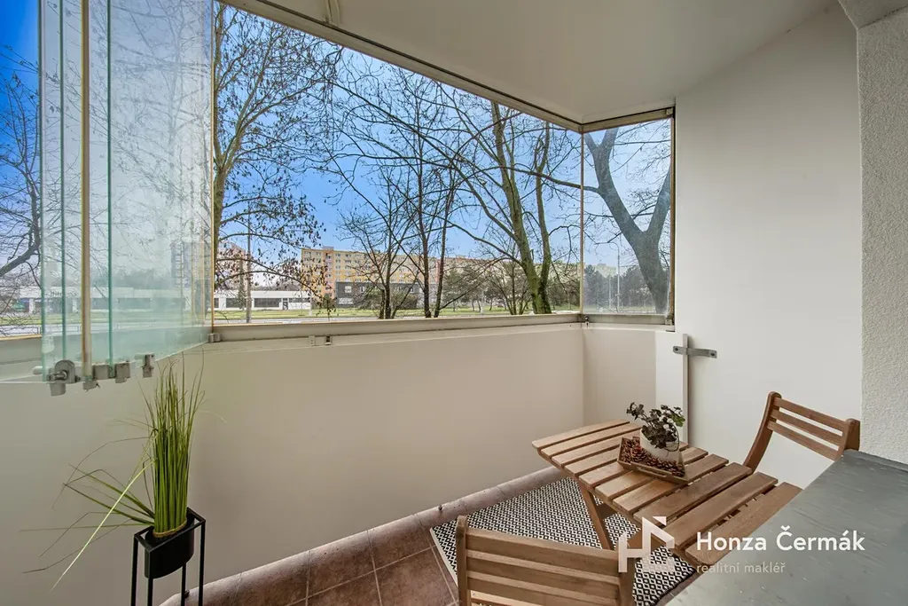 Dispozice bytu je prakticky řešena s neprůchozími pokoji, což zajišťuje soukromí pro každého člena domácnosti. Díky vyvýšenému přízemí je byt odstíněn od bezprostředního pohledu z ulice, takže interiér si zachovává pocit intimity i při otevřených žaluziích. Součástí bytu je také zasklená lodžie, která přirozeně rozšiřuje obytný prostor.