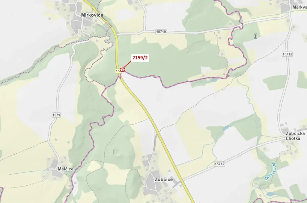 Lesní pozemek o výměře 90 m2, parcelní číslo 2159/2, podíl 1/1, katastrální území Žaltice, obec Mirkovice, obec s rozšířenou působností Český Krumlov, okres Český Krumlov, Jihočeský kraj.