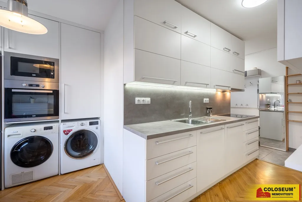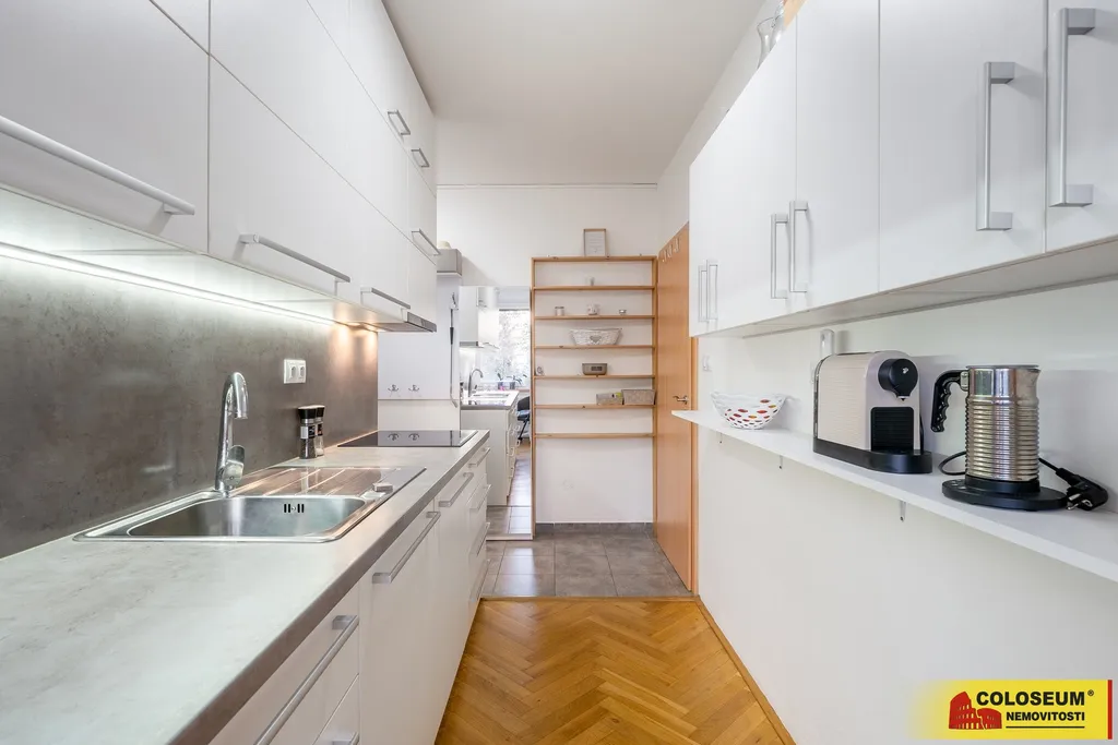 Nová kuchyňská linka včetně indukční varné desky, vestavěné trouby, mikrovlnné trouby a myčky. Nové obložkové interiérové dveře, bezpečnostní vstupní protipožární dveře s hlukovou izolací. Nová dlažba v předsíni i lodžii.