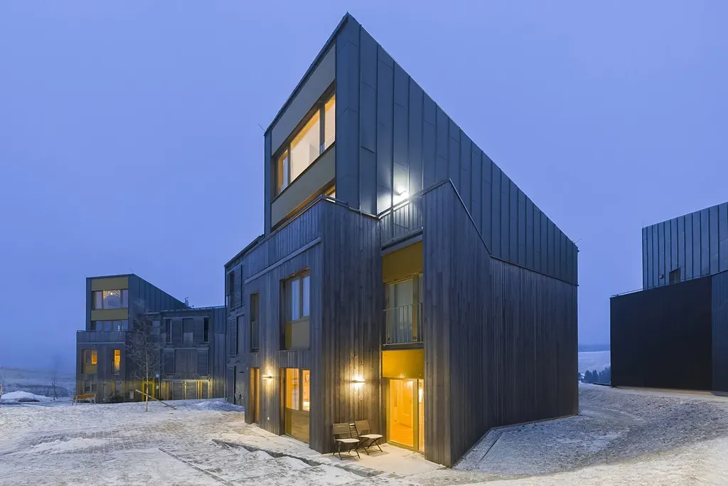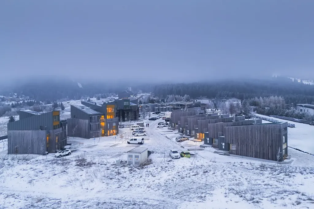 Projekt Klínovecké Louky navazuje na stávající komplex moderních domů v Loučné pod Klínovcem.