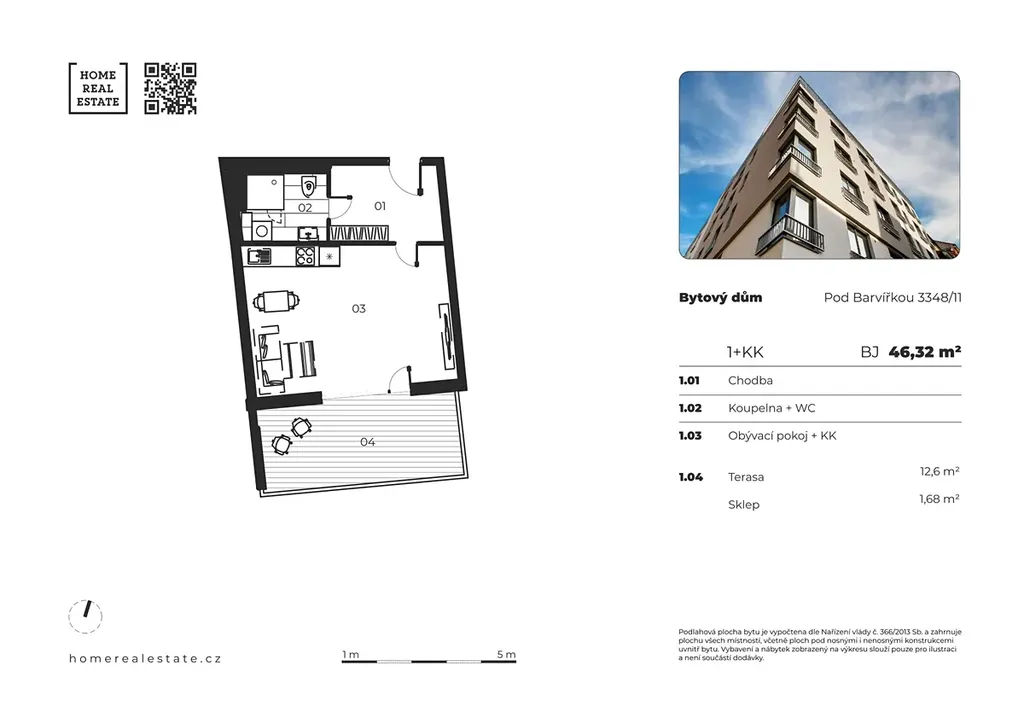 «Home Real Estate» ve výhradním zastoupení majitele nabízí k prodeji jednotku s dispozicí 1+kk o velikosti 32,04 m² s terasou o výměře 12,6 m², který se nachází v 1. NP rezidence Mélange v žádané městské části Praha 5 - Smíchov.