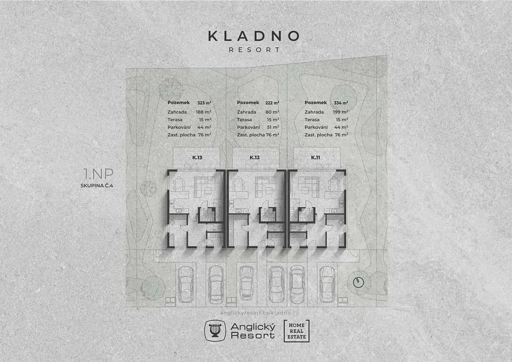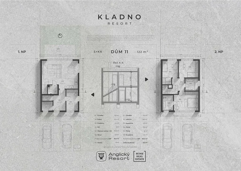 Představujeme Vám moderní řadový dům o výměře 122 m2 a dispozici 5+KK s pozemkem o velikosti 334 m2 v novém projektu KLADNO RESORT od renomované developerské společnosti Anglický Resort.