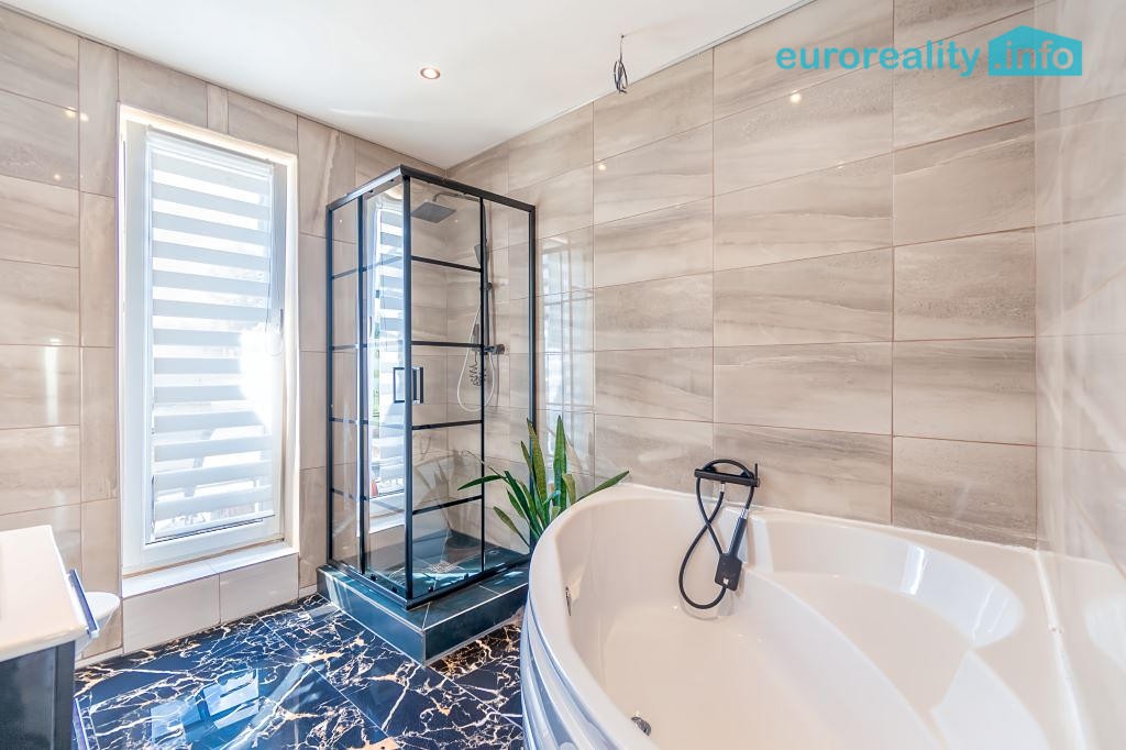 Vytápění je řešeno vodním podlahovým topením s rozvaděčem po celém domě, které zajišťuje rovnoměrné rozložení tepla a nízkou prašnost. V obývacím pokoji je instalována krbová vložka, která slouží jako efektivní doplněk vytápění a zároveň vytváří příjemnou atmosféru.