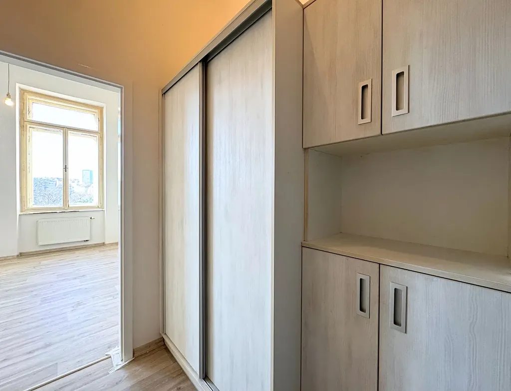 Prosvětlenému obytnému prostoru dominují kastlová okna s výhledem na park Lužánky a výška stropu 3,5 m. Byt se prodává bez zařízení a nabízí prostor pro vestavěné patro dle Vašich představ. Díky vysokým oknům a stropům bude byt i se spacím patrem působit vzdušně a útulně.
