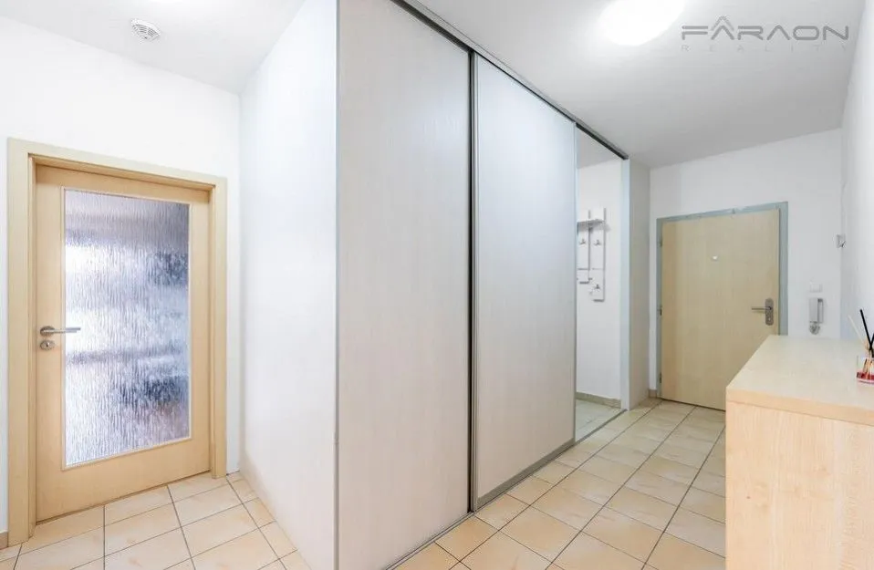 Pronájem krásného zařízeného bytu 2+kk (72 m2) s balkonem (10 m2), terasou (14 m2)v 5. nadzemním podlaží a garážovým parkovacím stáním v 1. podzemním podlaží v rezidenčním komplexu Sluneční vršek na Praze 10 - Hostivař, který nabízí dostatek soukromí a výhledy do Hostivařského lesoparku. Pro obyvatele jsou k dispozici dvě sportoviště s umělým povrchem a minigolf hned před domem. Instalován alarm Jablotron s možností napojení na PCO, jedna z ložnice je klimatizovaná.