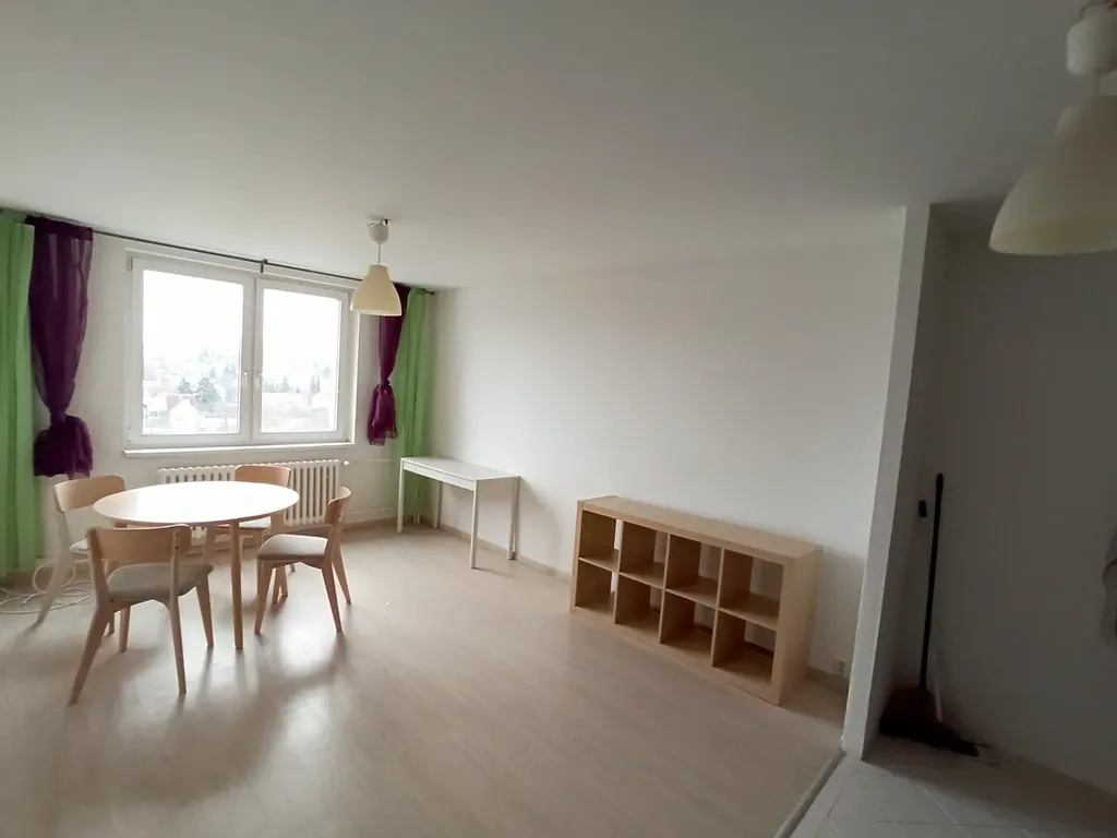 Pronájem hezkého bytu 2kk o ploše 44 m2 ve dvanáctém nadzemním podlaží v ulici Štúrova. V bytě je obývací pokoj s kuchyňským koutem se pěknou zánovní kuchyňskou linkou včetně elektro spotřebičů (myčka nádobí, sklokeramická varná deska, pečící trouba, lednice, mikrovlnná trouba, kuchyňský stůl se 4 židlemi, psací stůl, policový regál. Dále je v bytě koupelna s vanou, toaletou a pračkou, ložnice (s komodou, vysokou třídílnou skříní a prosklenou skříňkou), chodba (s botníkem a policovým regálem). Na oknech, která směřují do klidné ulice jsou závěsy. Topení a ohřev vody dálkové, podlahy plovoucí a dlažba. Internet není v ceně. K ceně se připočítávají poplatky za služby 3.500,- Kč/měs (vodné stočné, teplá voda, topení, odpad, úklid a ostraha, energie společných prostor a osvětlení, výtah, recepce) a vlastní záloha na elektřinu 1.200,-Kč/měs. Nedaleko se nachází Thomayerova nemocnice a IKEM. Parkování na ulici, nebo je možný pronájem parkovacího místa od externí společnosti. Poblíž domu je autobusová zastávka Zálesí a Nemocnice Krč, dále opodál stanice metra Kačerov. Velmi dobrá dopravní dostupnost.