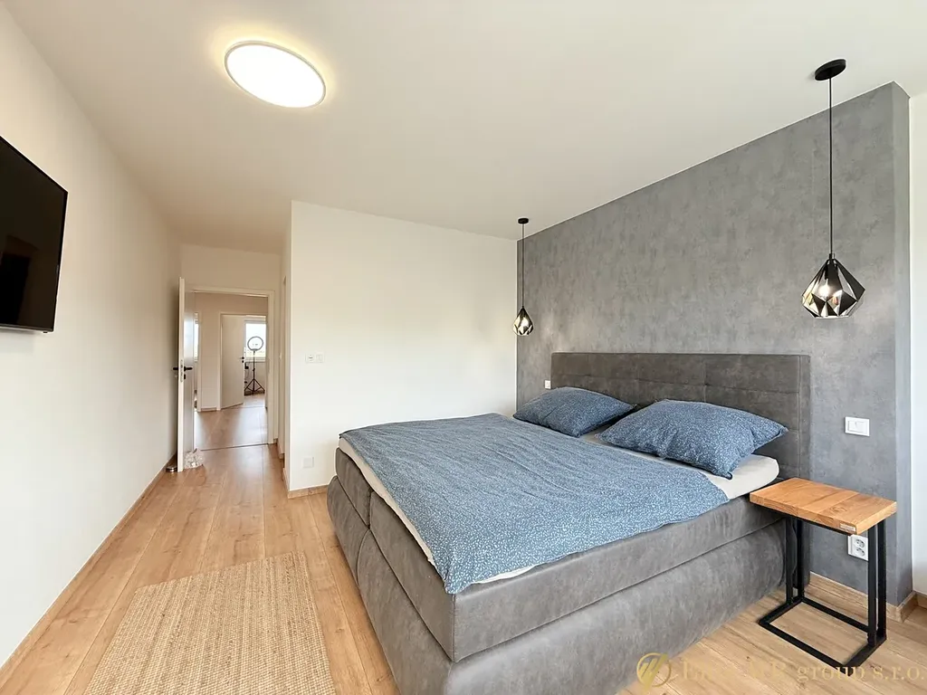 Dům byl připravován pro vlastní bydlení současných majitelů, čemuž odpovídá kvalita provedení i důraz na funkčnost. Dispozice 5+kk poskytuje prostorný obývací pokoj s kuchyňským koutem a čtyři samostatné pokoje, vhodné pro rodinu i kombinaci bydlení a home office. Interiér působí světle a vzdušně, s důrazem na praktičnost a dostatek úložných prostor.