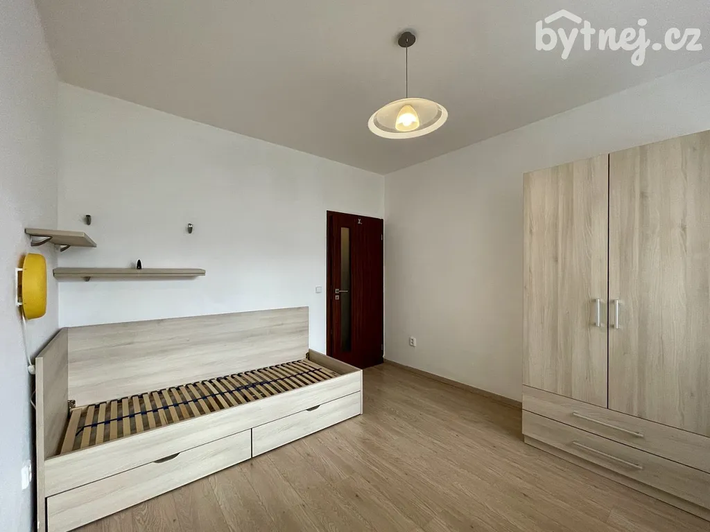V dětském pokoji je k dispozici rám postele, šatní skříň, psací stůl, úložný prostor a vstup na druhý balkon orientovaný do vnitrobloku.