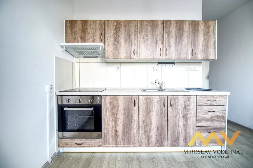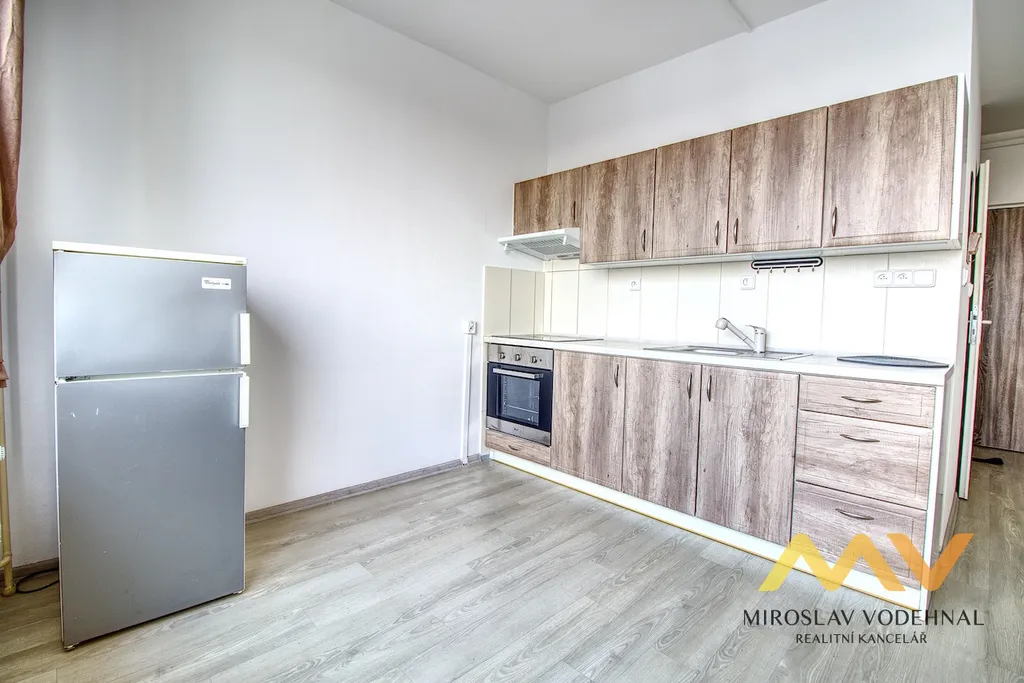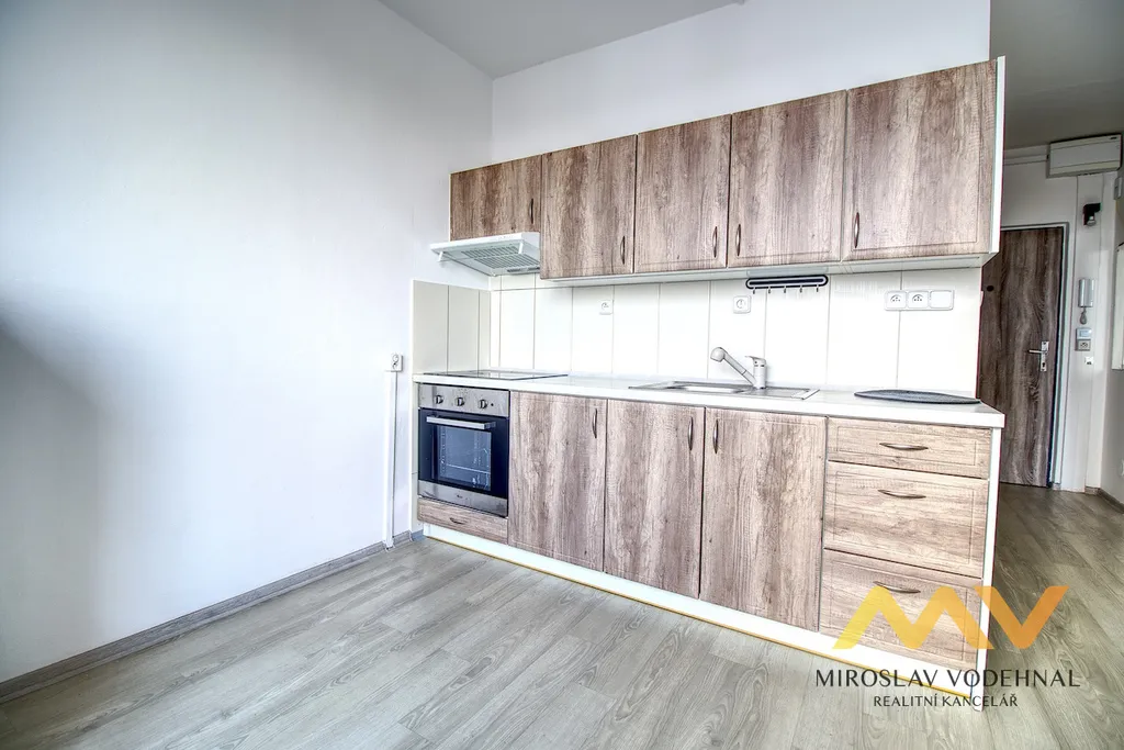 Jedná se o částečně zařízený, rekonstruovaný byt s pěkným výhledem do zeleně. Prostorná obyvatelná kuchyň nabízí kuchyňskou linku se spotřebiči (sklokeramická varná deska, el. trouba, odsavač par) a lednici s mrazákem. Pokoj je vybaven pohovkou, obývacím nábytkem a psacím pracovním stolem. Byt má zděné bytové jádro, koupelna je se sprchovým koutem a toaletou. V komoře, umístěné hned za vchodovými dveřmi, je velký úložný prostor a přípojka na pračku. K bytu náleží sklepní kóje.