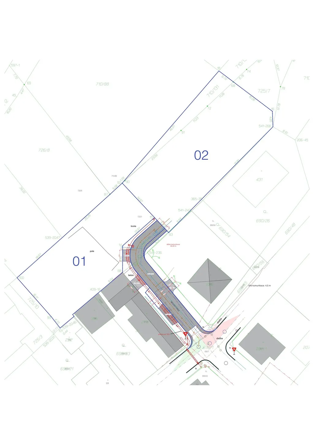 Pozemky jsou aktuálně připravovány k zasíťování. Nový majitel zde bude mít k dispozici: