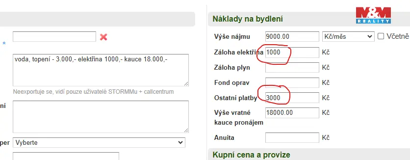 (voda, topení - 2.500,- elektřina 1000,- kauce 16.000,-)