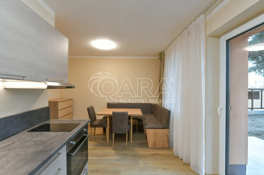 Byt č.4. Exkluzivní nabídka pronájmu bytu 1+1 (30,38m2) s vlastní oplocenou předzahrádkou (35m2) v přízemí nového bytového domu v klidné části čtvrti rodinných domů na Střížkově.