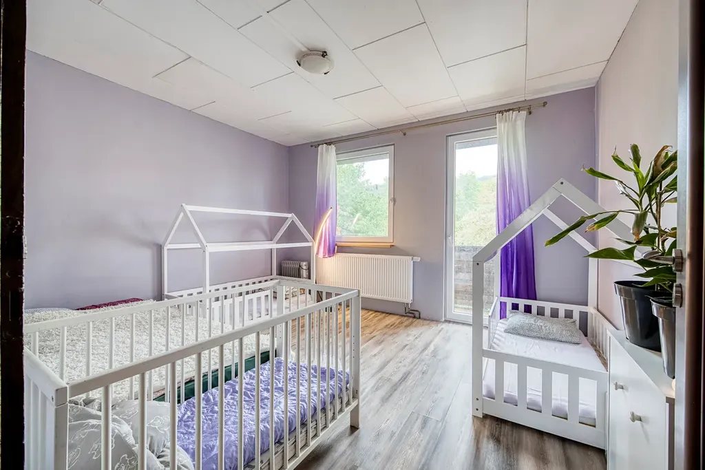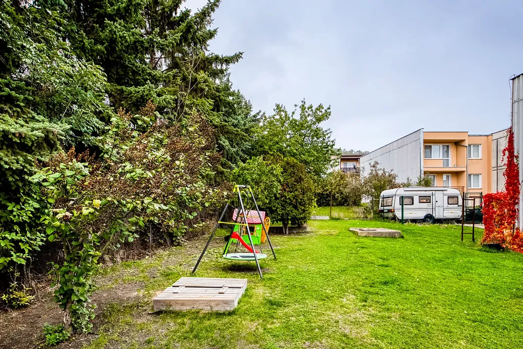 Pozemek kolem domu nabízí dostatek prostoru pro relaxaci, zahradničení nebo dětské hry.