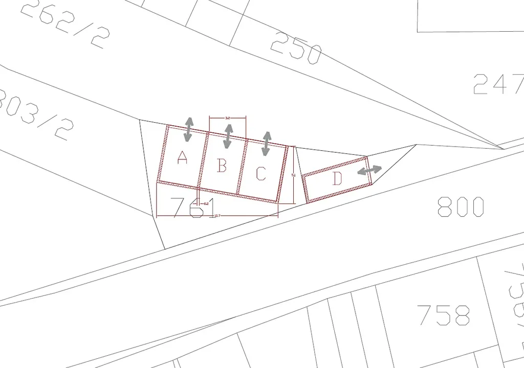 Momentální změna územního plánu přesune pozemek parcelní číslo 761 do zastavitelného území - s možností stavby dopravní infrastruktury - garáží. Bylo by tedy možné na pozemku postavit 3 další garáže dle nákresu.