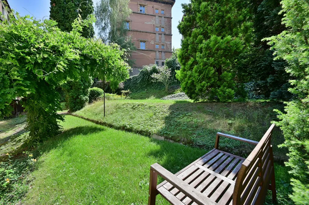 Nová rekonstrukce byt 1+kk s jihozápadními okny do zahrady, která je přístupná pro obyvatele domu. Velmi tichý byt, stejně tak se v celém domě dbá na klid.
