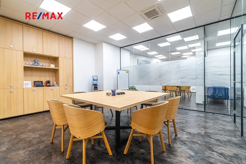 Součástí pronájmu je částečně zařízená kancelář o výměře 31 m2 a využití společných prostor - dvou zasedacích místností 50 m2, recepce, vybavené kuchyňky, toalet a sprchy.