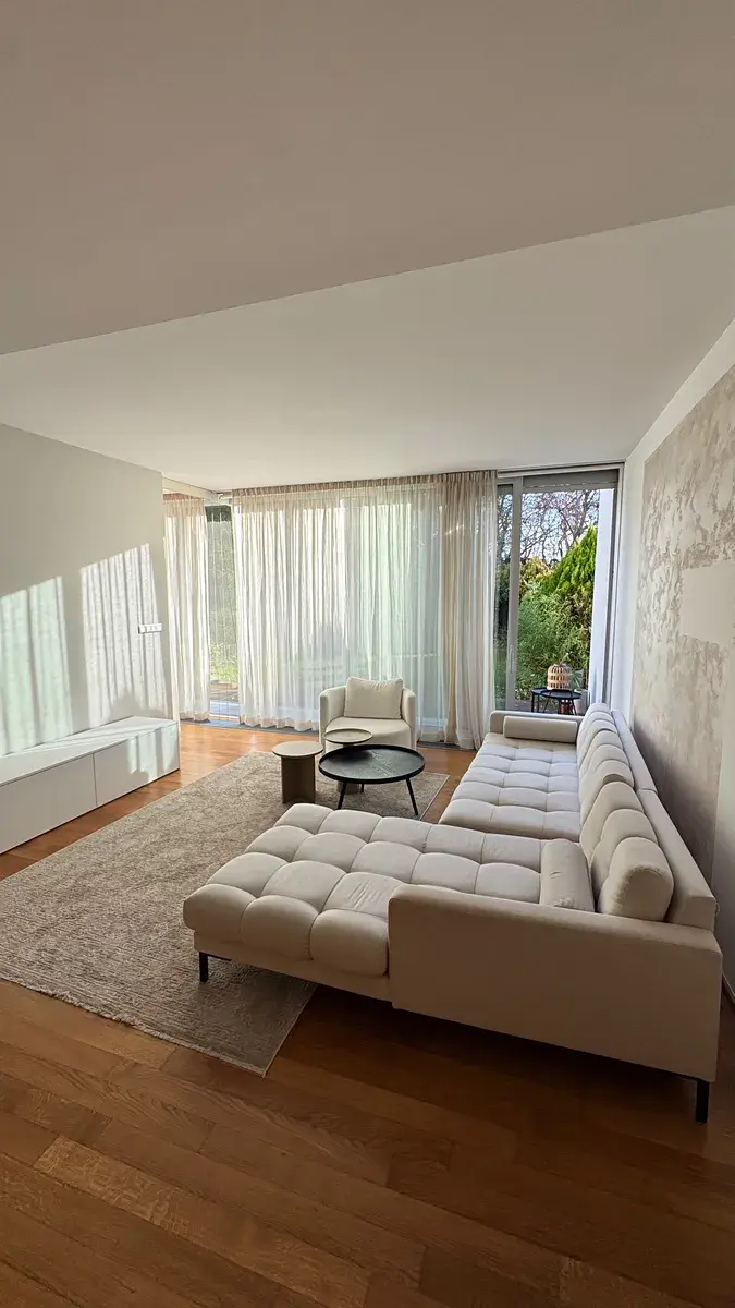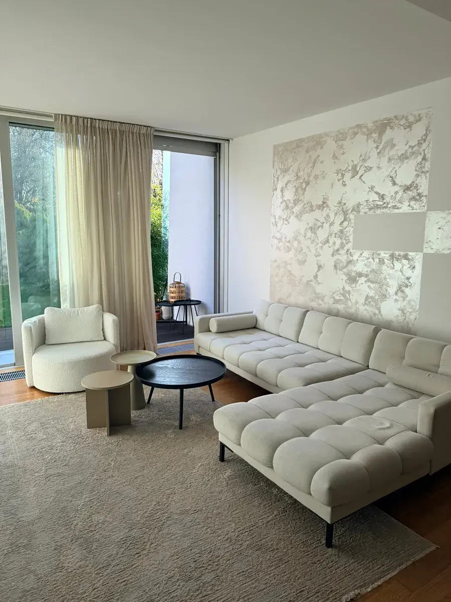 Prostorný obývací pokoj s kuchyňským koutem a jídelnou tvoří srdce bytu. Celý prostor je navržen s důrazem na maximální komfort a estetiku. Z obývacího pokoje máte přímý vstup na krásnou předzahrádku, kde můžete relaxovat a užívat si soukromí.