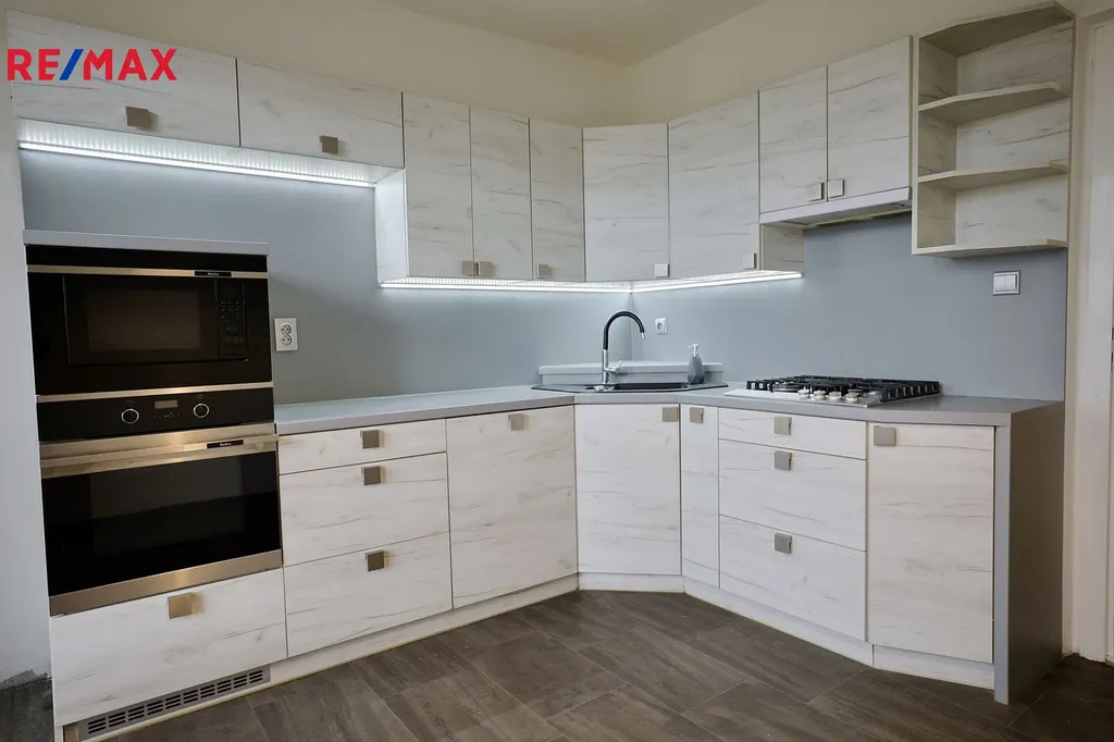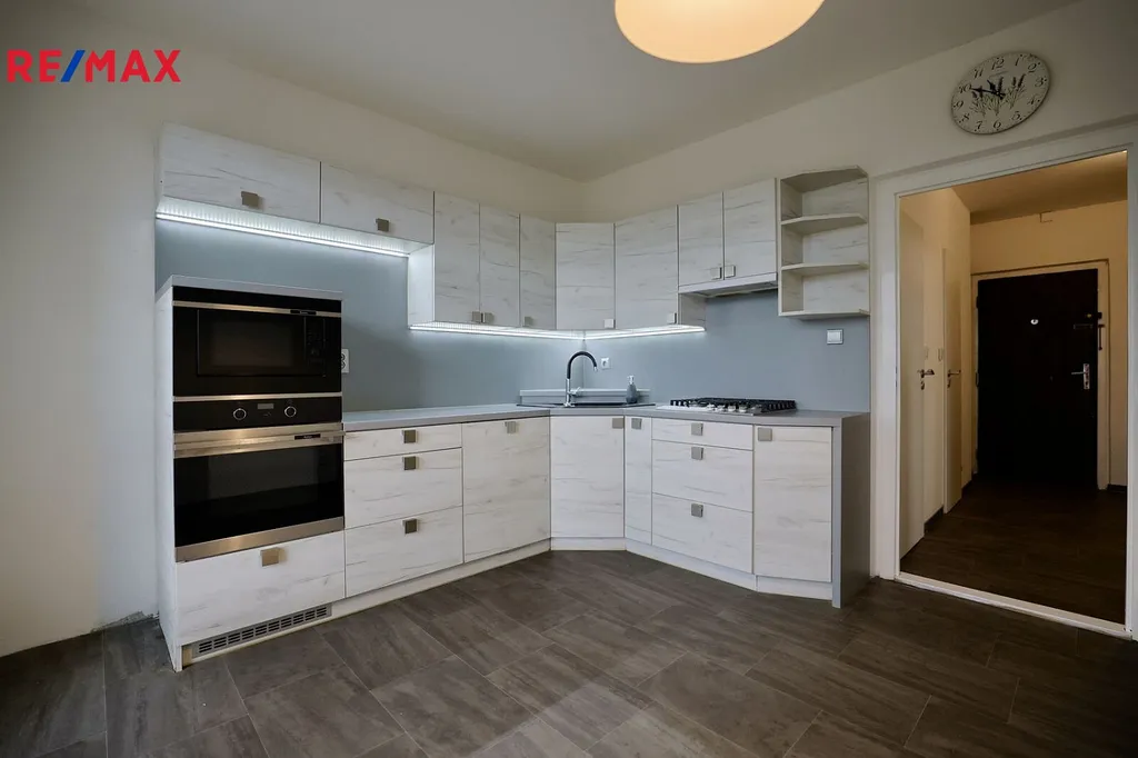 Interiér bytu je částečně zrekonstruován (kuchyň, koupelna a wc), zbytek je ve velmi pěkném stavu. V ložnici a na chodbě jsou vestavěné skříně.