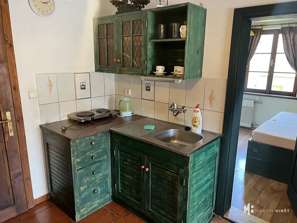 Nabízíme k pronájmu byt umístěný v 1 patře domu ve kterém se nachází čtyři samostatné byty. Byt se nabízí zařízený nábytkem (postel, skříň, komoda, stůl 2x židle) i spotřebiči (pračka, lednička, TV, el. dvouvařič, varná konvice a částečně kuchyňské nádobí). V koupelně je sprchový kout a WC s odvětráním oknem. Naproti bytu je veřejná místnost, sloužící jako částečný sklad. Možnost úschovy kol v objektu.