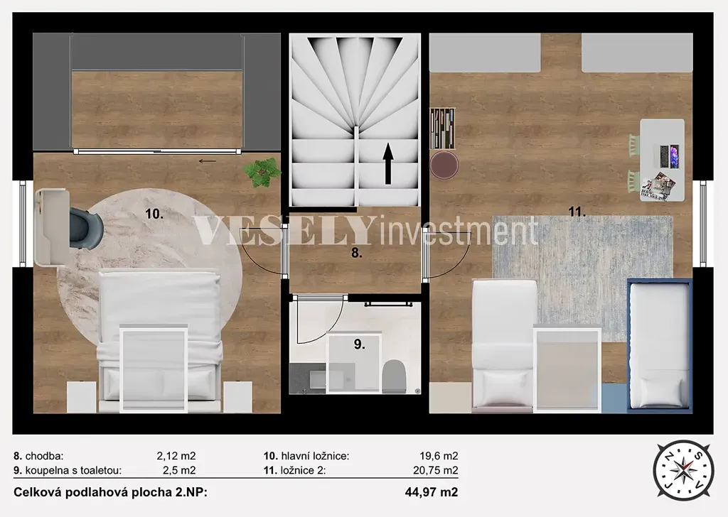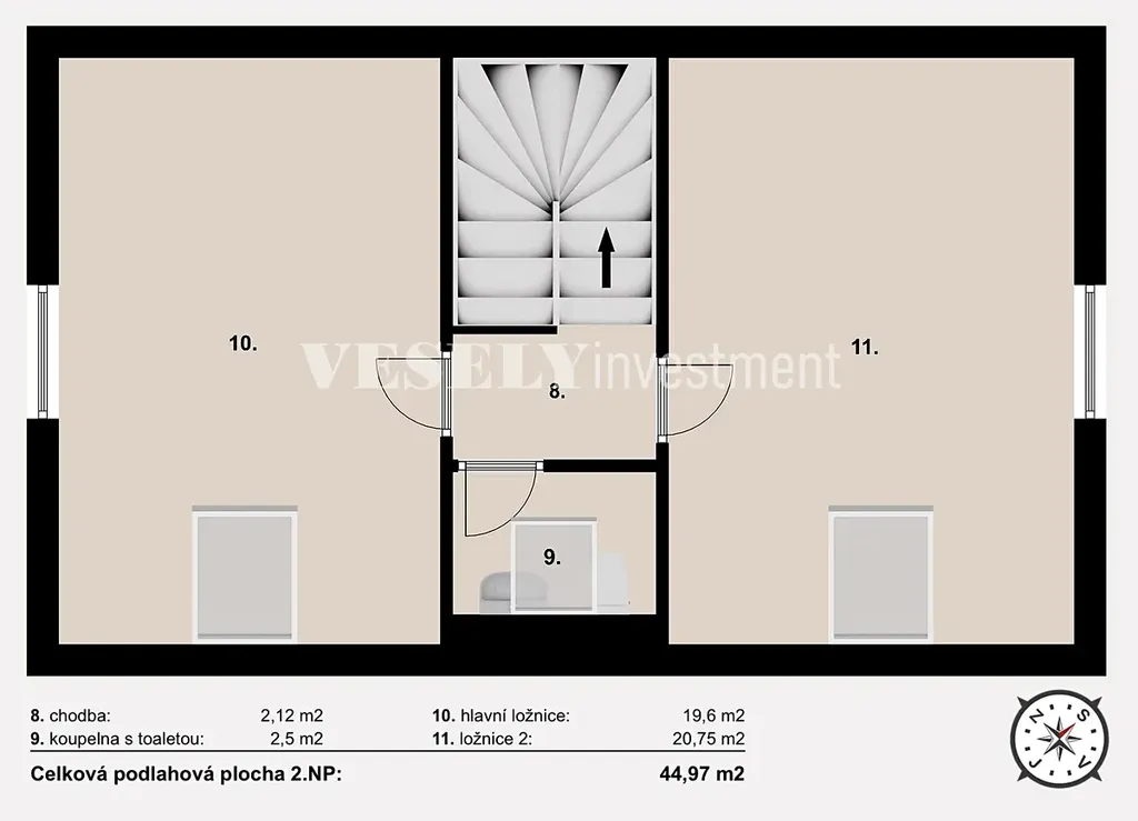 Dům je částečně podsklepem a tedy rozdělen do 3 podlaží, 1.NP, 2. NP a 1PP.