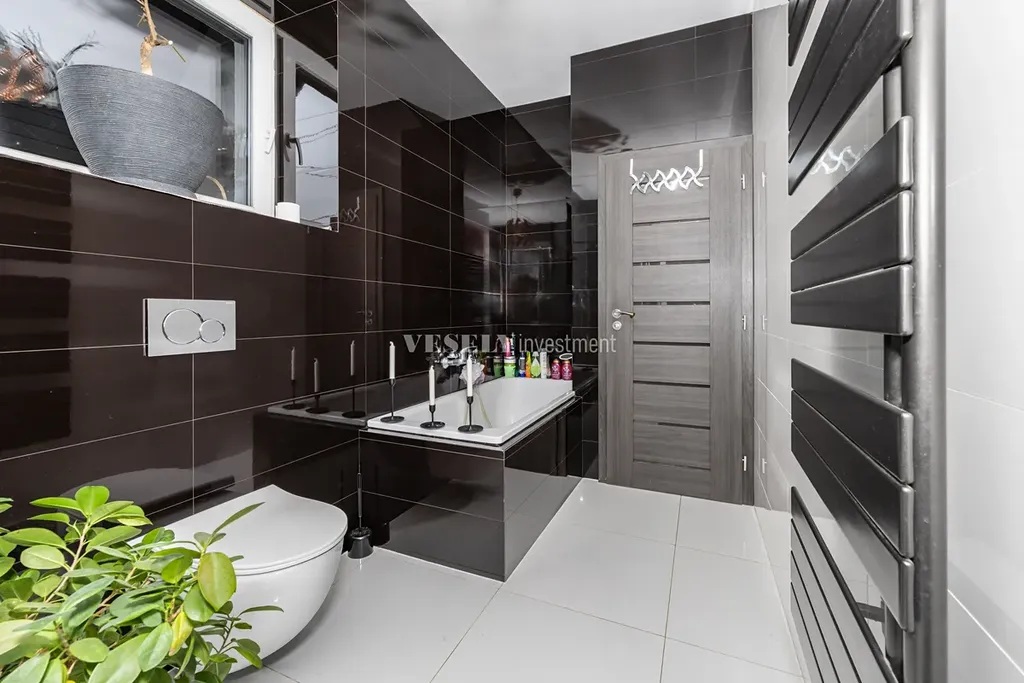 Dům prošel kompletní rekonstrukcí a nabízí současný standard bydlení s důrazem na funkčnost, světlé prostory a kvalitní materiály. Interiér působí vzdušně, s moderní kuchyní, obývacím prostorem s krbem, prostornou koupelnou a ložnicemi v klidové části domu. Díky velkým oknům je dům přirozeně prosvětlen po celý den. Celkový dojem doplňuje přímý vstup na zahradu, který propojuje interiér s venkovním posezením.