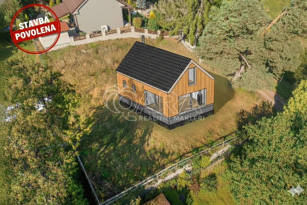 Navržená stavba je moderním rekreačním domem, který však může sloužit i pro trvalé bydlení. Dům o zastavěné ploše 80m2, funkční uspořádání odpovídá velkorysé dispozici 3+kk. Dům se rozkládá do dvou podlaží, část přízemí je otevřena až do krovu. Rád Vám poskytnu projektovou dokumentaci a podklady ke stavebnímu povolení. Výsledná stavba lze upravit formou změny stavby před dokončením, nebo postavit dům úplně odlišný.
