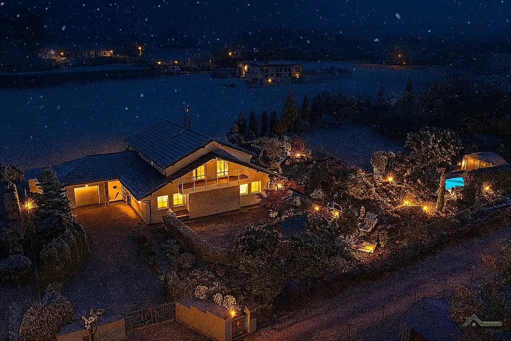 • Přízemí: prostorný obývací pokoj s krbem a plně integrovaným systémem domácího kina s rozvody pro prostorový zvuk, kuchyň s jídelnou a spíží, dvě ložnice, koupelna, samostatné WC, technická místnost s FVE a tepelným čerpadlem, garáž s centrálním vysavačem, infra sauna a prostorná místnost, kterou si můžete přizpůsobit podle svých potřeb – ať už toužíte po domácí posilovně, relaxační zóně se zelení nebo místě pro rodinnou zábavu.