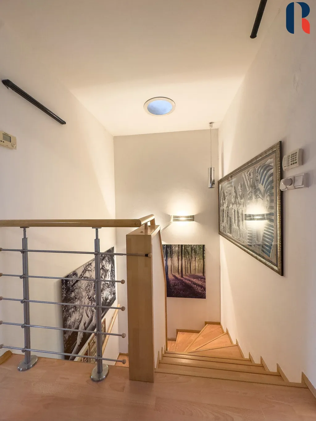 Exkluzivně Vám nabízíme skvělou příležitost v podobě možnosti koupě moderního rodinného domu v klidné lokalitě Bašť v sousedství hlavního města. Krajní řadový dům plný moderních technologií o aktuální dispozici 4+1, byl kolaudován v roce 2007. V posledních letech prošel vylepšeními a úpravami. Od změny dispozice po instalalace moderních technologií, které jsou praktické a snižují náklady na provoz (např. tepelné čerpadlo s prodlouženou zárukou, v přízemí klimatizace, šedá voda pro použití v domě, automatický změkčovač vody, zásobníky vody na zalévání zahrady, elektrické rolety Lomax na oknech, elektricky ovládaná vjezdová brána, zabezpečení Jablotron, kamerový systém.....).
