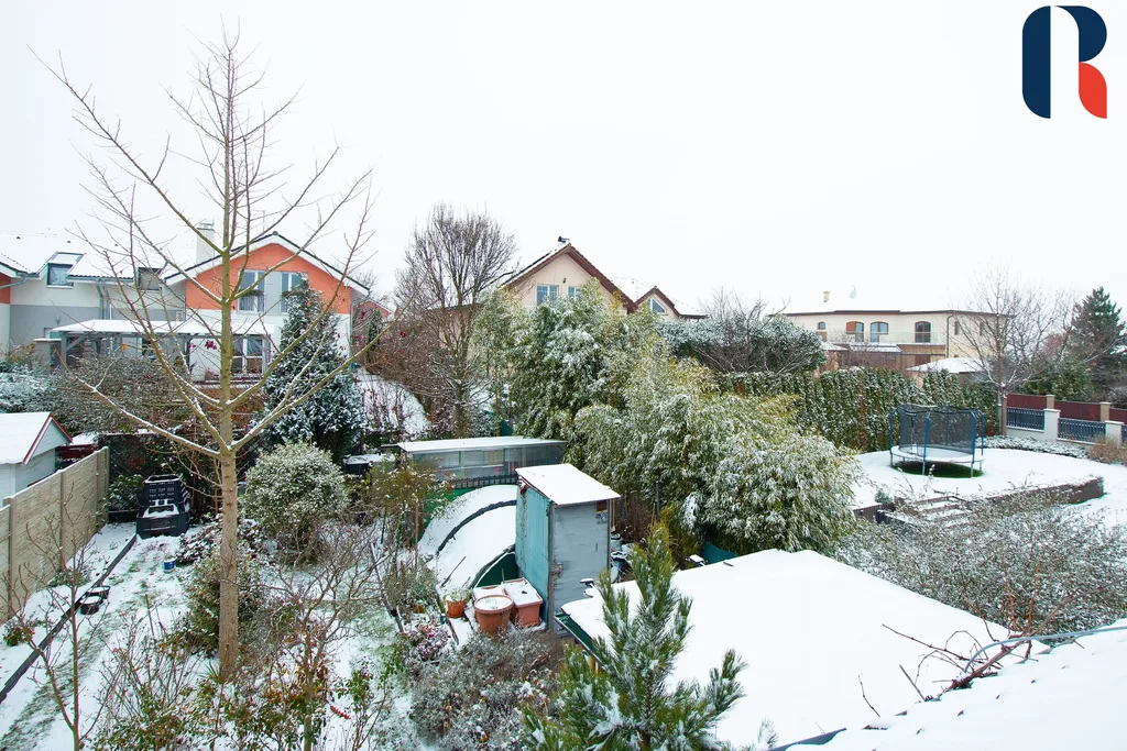 Velkou výhodou je rohové umístění domku: více klidu, větší pozemek a pouze jeden přímý soused. Zahrada o velikosti 282 m2, na které se nachází vyhřívaný bazén s protiproudem vybízí k trávení volného času a relaxaci. Zahrada je udržovaná a je kombinací okrasné a užitkové, v červnu 2025 byl postaven v části zahrady nový plot, vyhřívaný bazén je kompletně přepláštěn.....