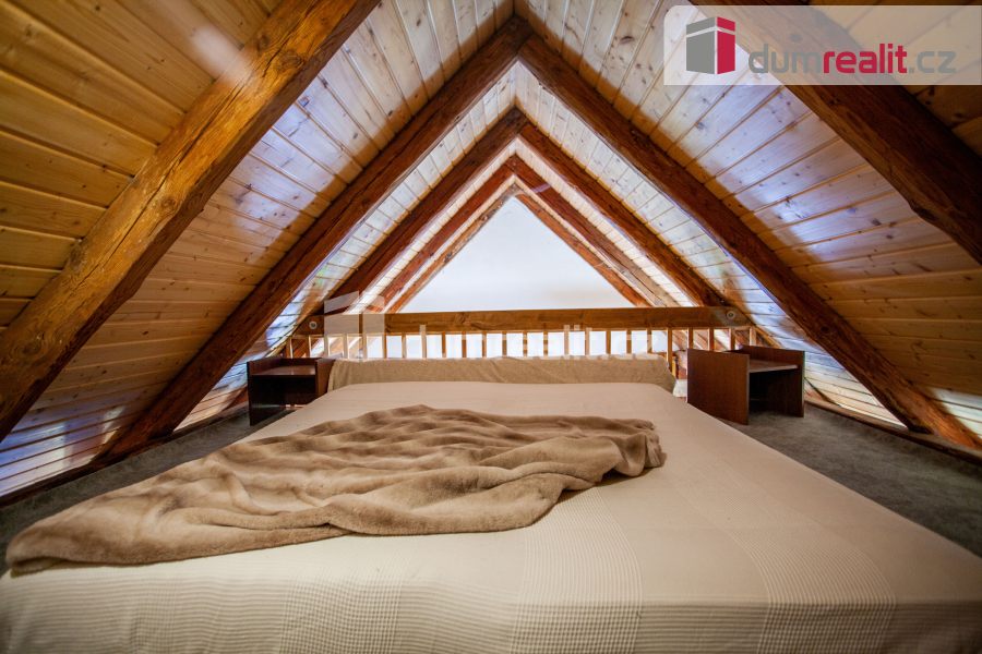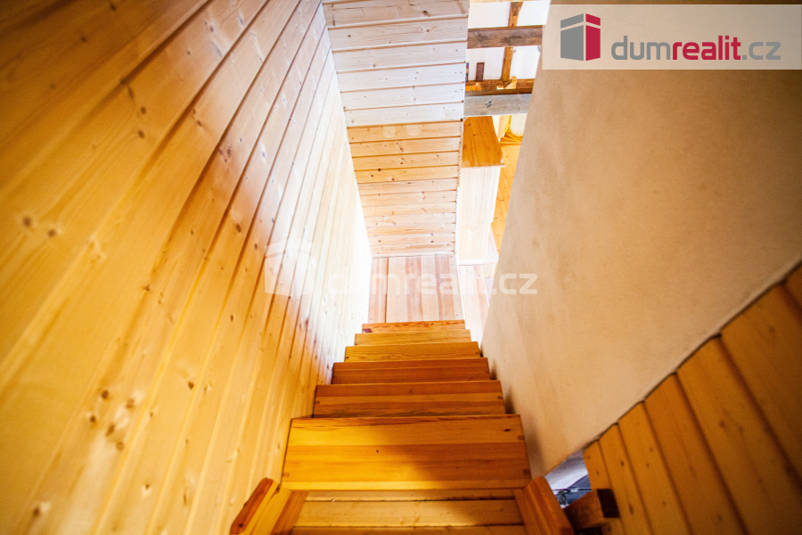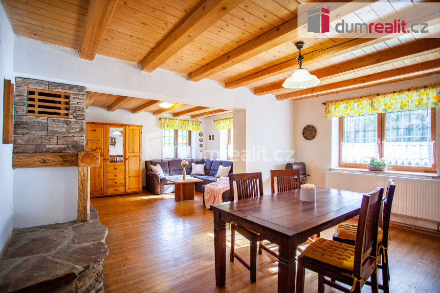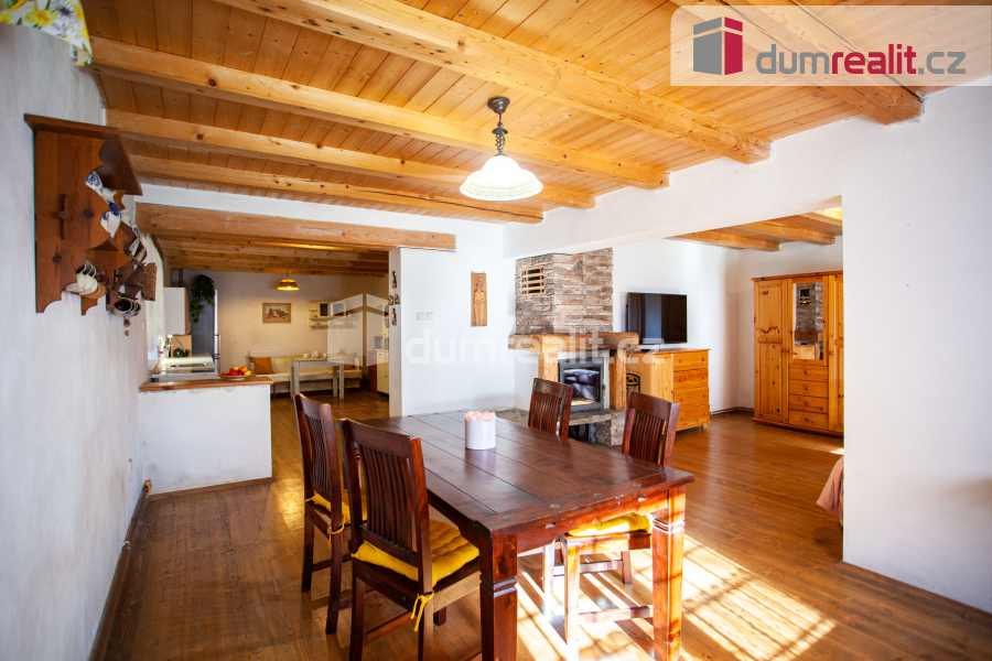Dumrealit.cz Vám zprostředkuje prodej rodinného domu (chalupy) s pozemkem, dílnou, stodolou, saunou a rybníčkem, na ojedinělém místě "NA SAMOTĚ V LESE" u obce Hněvanov, Rožmitál na Šumavě, u státních hranic s Rakouskem - Dolní Dvořiště. Prodávaný komplex se nachází na pozemku par. č. st. 133 jehož součástí je stavba; par. č. 848/4 a 862/2 to vše je zapsané na LV č. 12 v k. ú. Hněvanov, obec Rožmitál na Šumavě. Podrobné rozkreslení dispozice naleznete na orientačním plánku mezi fotografiemi. Dům rekonstruovaný v roce 2009, je ve velmi pěkném stavu a jeho vytápění je kombinované: 1) zplynovacím kotlem na tuhá paliva; 2) tepelné čerpadlo (vzduch-voda); 3) krbová vložka (vzduch-vzduch) v obývacím pokoji s prostupy do podkroví; 4) kamna s plotýnkou v kuchyni; 5) "kanadská" kamna v předsíni; 6) krb ve společenské místnosti. Objekt má vlastní vrt s užitkovou vodou a kanalizace je řešena jímkou. Okna jsou plastová s dřevěným dekorem a izolačními trojskly. Zdivo je smíšené. Tepelná izolace v podkroví je minerální vata tl. 24 cm. Strop a krov je nový (k dispozici máme fotodokumentaci z proběhlé rekonstrukce). Ohřev teplé vody je pomocí elektrického bojleru. Na pozemku se nachází venkovní finská sauna, rybníček a hřiště. Doporučuji prohlídku, "NA SAMOTĚ V LESE" se nemovitosti neprodávají každý den. Více informací Vám poskytne realitní makléř Tomáš Pelda z realitní kanceláře A TEPMO. Zajistíme Vám financování a veškerý právní servis. Ev. číslo: 653366.