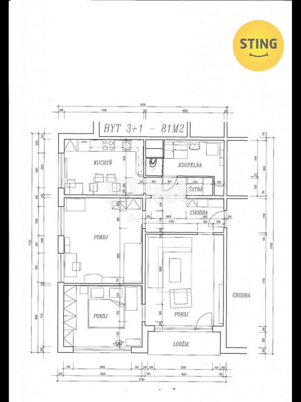 Byt má k dispozici 3 prostorné pokoje, velkou kuchyni s jídelní částí, koupelnu, šatnu a samostatné WC. Součástí jednoho z pokojů je balkon se zasklením. K dispozici bude samozřejmě kuchyňská linka (bez lednice), šatní skříň na chodbě a v jedné místnosti vestavná skříň.