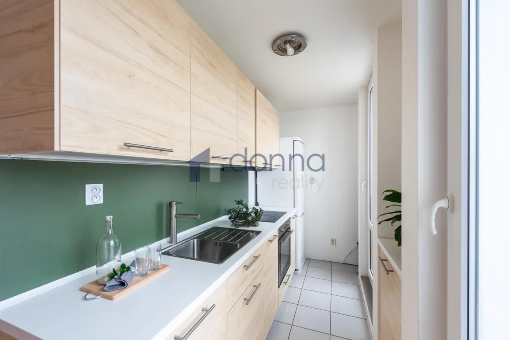 Nabízíme k pronájmu pěkný byt 2+kk, ploše 51m2 + 4x balkónek, ve 4. podlaží cihlového domu z roku 2003, bez výtahu, ulice Za Černým mostem, Praha 9 - Kyje.
