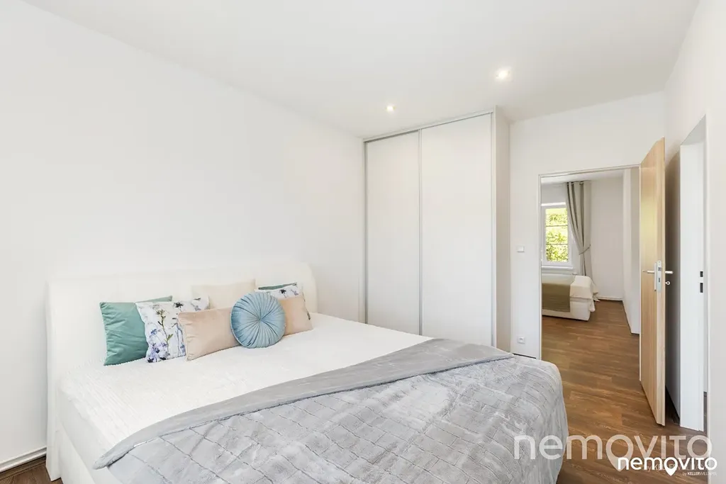 Apartmán 3+kk ve druhém podlaží kompletně zrekonstruovaného domu, který byl původně vybudován pro luxusní byty vysoko postavených pracovníků továrníka Johanna Liebiega. Dům prošel kompletní rekonstrukcí a nachází se v něm 10 zbrusu nových apartmánů (1+kk, 2+kk i 3+kk), kde ke každému náleží vlastní parking a prostor pro malou zahrádku nebo terasu (mimo hlavní objekt na sousedním pozemku).