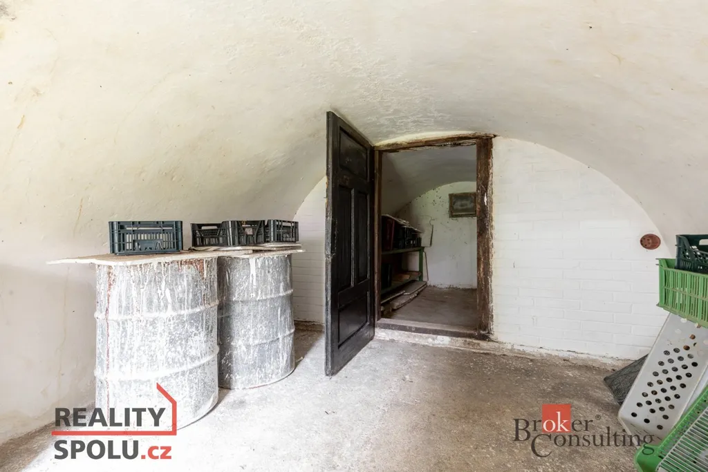 Dům není podsklepený, sklep se nachází samostatně naproti vchodu a je přirozeně skrytý v okolní zeleni.