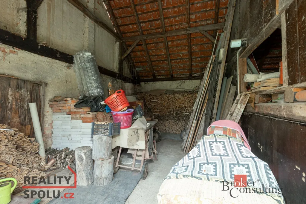 K domu náleží tři kůlny a jedna garáž, které jsou vzájemně průchozí. Díky zachovaným vysokým stropům zde vzniká možnost rozšíření obytné části – jak v přízemí, tak i v patře. Prostory lze využít také ke komerčním účelům.