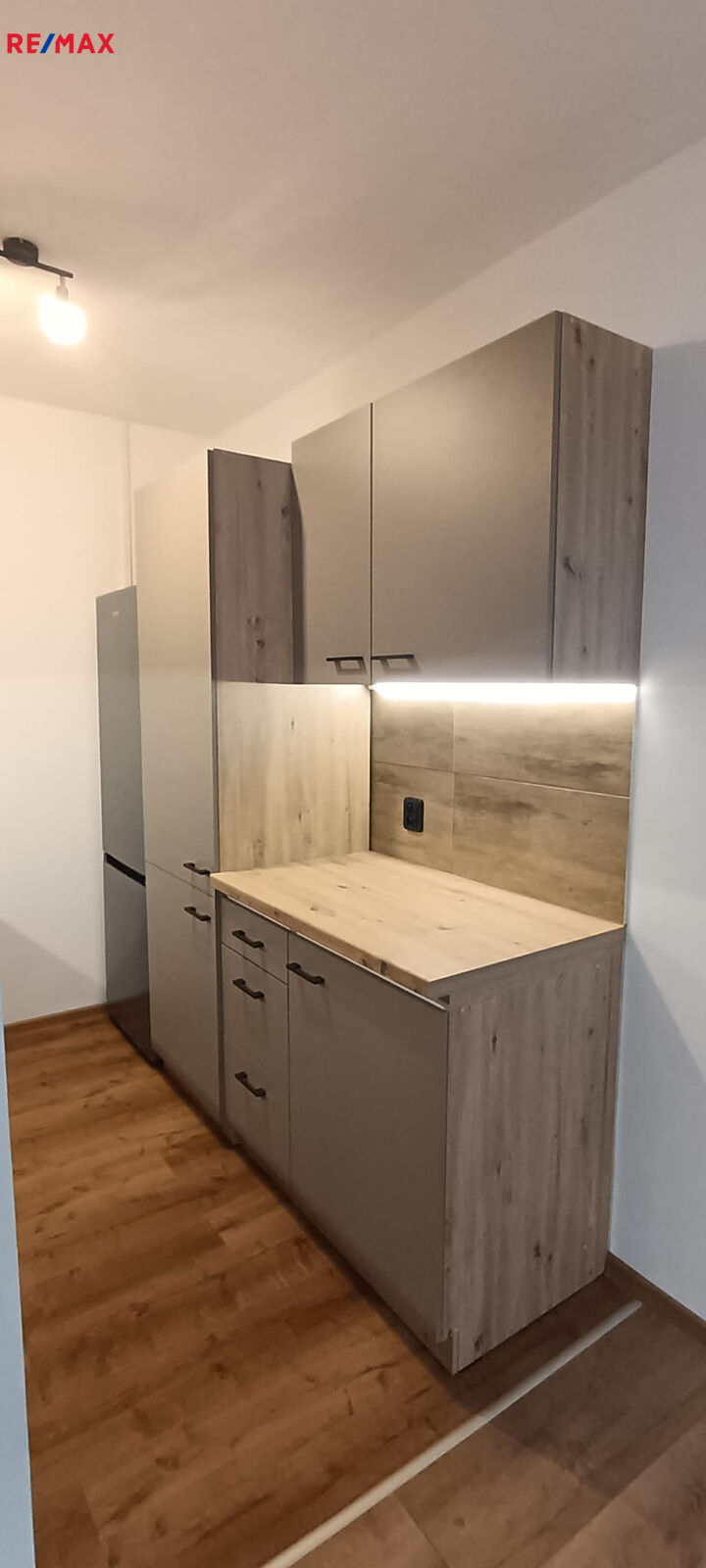 Byt prošel také kompletní rekonstrukcí a jsou zde dva pokoje a kuchyňský kout s lednicí a sporákem. V koupelně je sprchový kout, toaleta je samostatná.