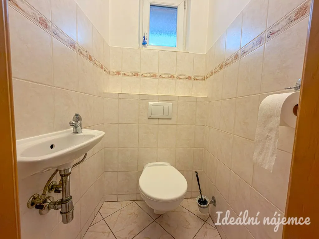 Součástí domu je rovněž garáž pro jedno auto se zadním vstupem přímo na zahradu. Podlahy v domě jsou řešeny kombinací dlažby a plovoucí podlahy.