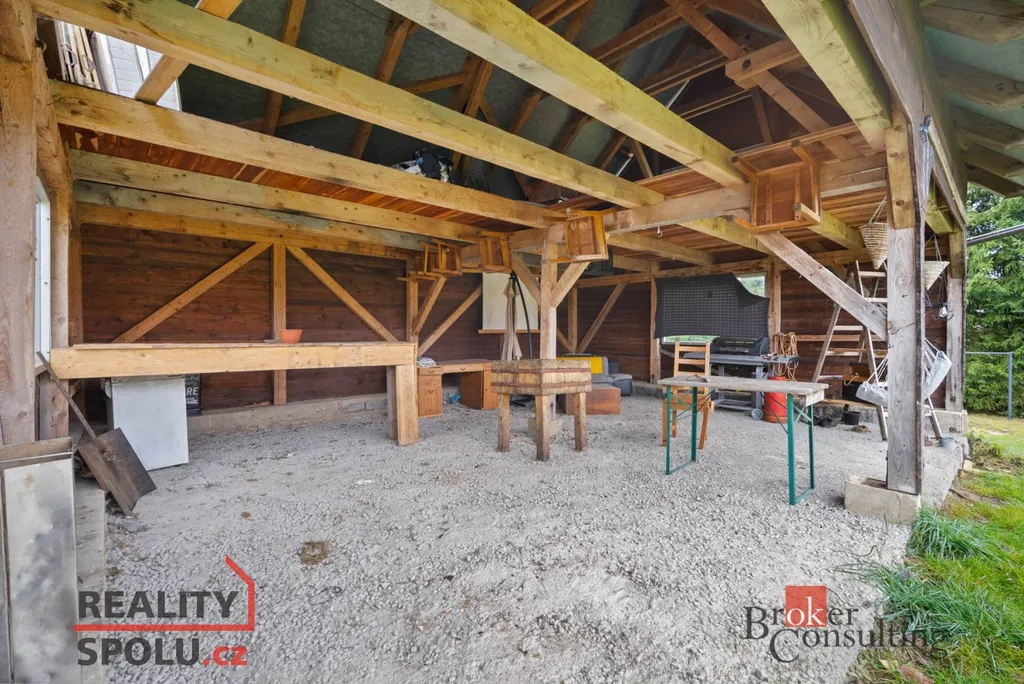 Na pozemku se kromě původního rodinného domu nachází také zachovalá chatka, která je plně funkční a nabízí možnost přespání. Chatka je vybavena kuchyňkou, je napojená na elektřinu i vodu a může sloužit jako zázemí během budoucích prací nebo pro rekreační využití.