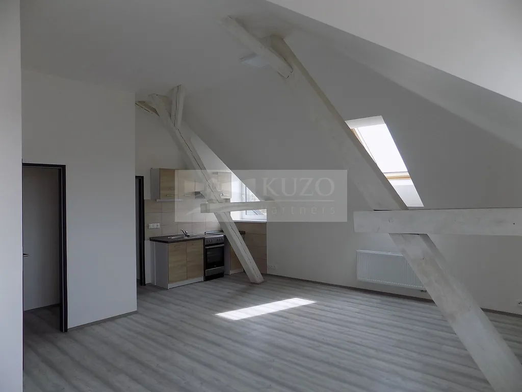 KUZO Partners Vám zprostředkují exkluzivně možný pronájem novostavby atypického podkrovního bytu 2+kk, 68 m2, v nově zrekonstruovaném bytovém domě, bývalém Špýcharu, který se nachází v těsné blízkosti centra města Dobříš. Byt v OV o celkové podlahové ploše 68 m2 se nachází ve čtvrtém nadzemním podlaží čtyřpatrového cihlového domu s výtahem a bezbariérovým přístupem. Členění bytu je následující: vstupní chodba, odtud vpravo vcházíme do kuchyně s komorou, novou kuchyňskou linkou a sporákem spojené s velkým atypickým obývacím prostorem, vlevo do prostorné obývací ložnice orientované na západ. Z chodby vstoupíme do samostatné koupelny se sprchovým koutem, umyvadlem, koupelnovým radiátorem a WC. Bytový dům, který disponuje deseti bytovými jednotkami, prošel nadstandardní kompletní rekonstrukcí a rozhodně uspokojí náročné klienty s požadavky vysokého standardu bydlení. Parkování je možné v těsné blízkosti domu. V blízkém okolí domu je veškerá občanská vybavenost. Nájemné včetně poplatků činí měsíčně 20000,- Kč ( 16500,- Kč nájemné a 3500,- Kč záloha na služby/ 2 osoby). Vratná kauce činí dvojnásobek nájemného 40000,- Kč. Energie bude převedena na nájemce. Ostatní informace v RK.