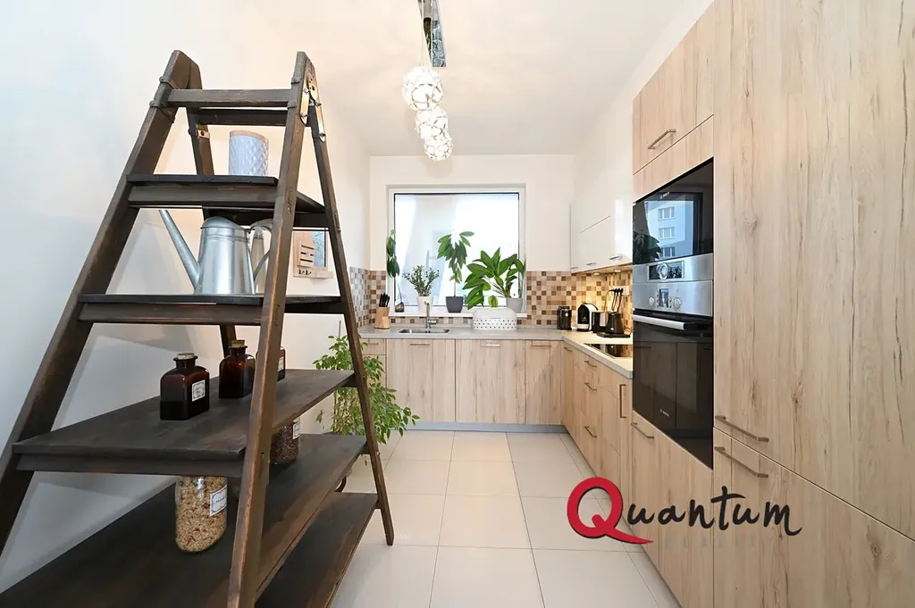 • moderní kuchyňská linka se značkovými, energeticky úspornými spotřebiči (lednice, trouba, varná deska, MW, myčka)