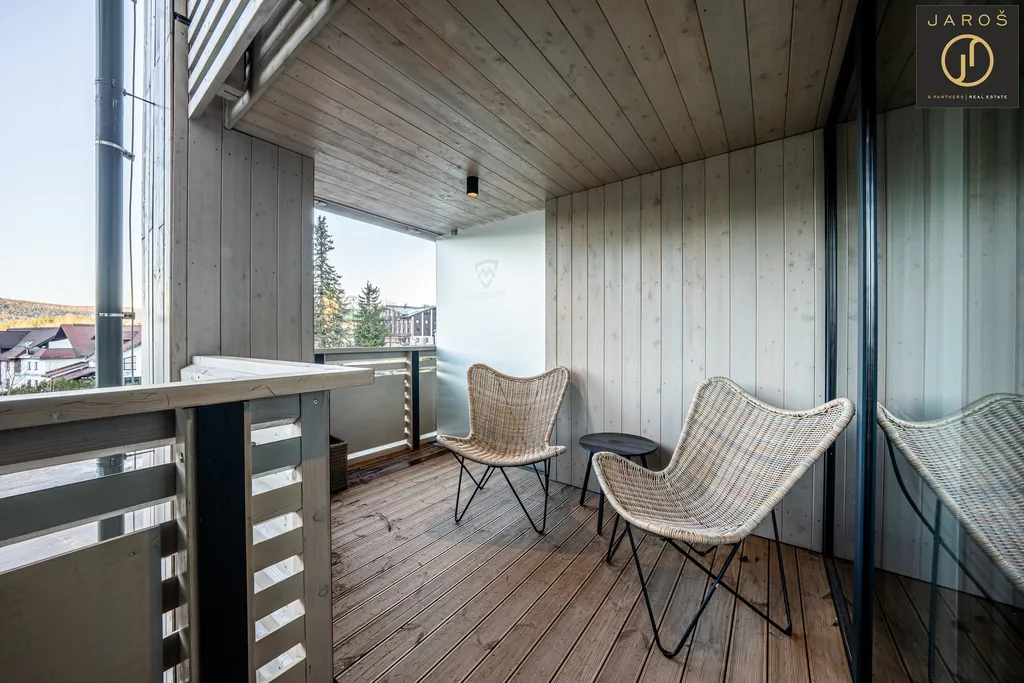 Nabízíme k prodeji plně vybavený a zařízený apartmán o dispozici 1+kk s podlahovou plochou 28 m², prostornou terasou o výměře 8 m², vlastním sklepem a možností dokoupení vlastního parkovacího stání.