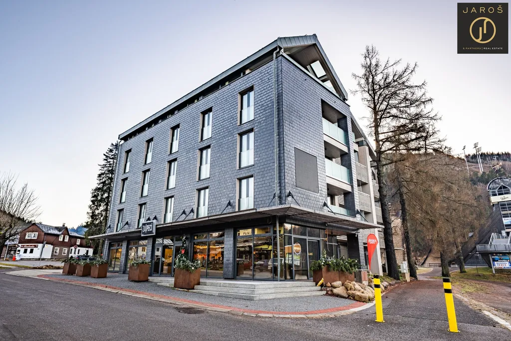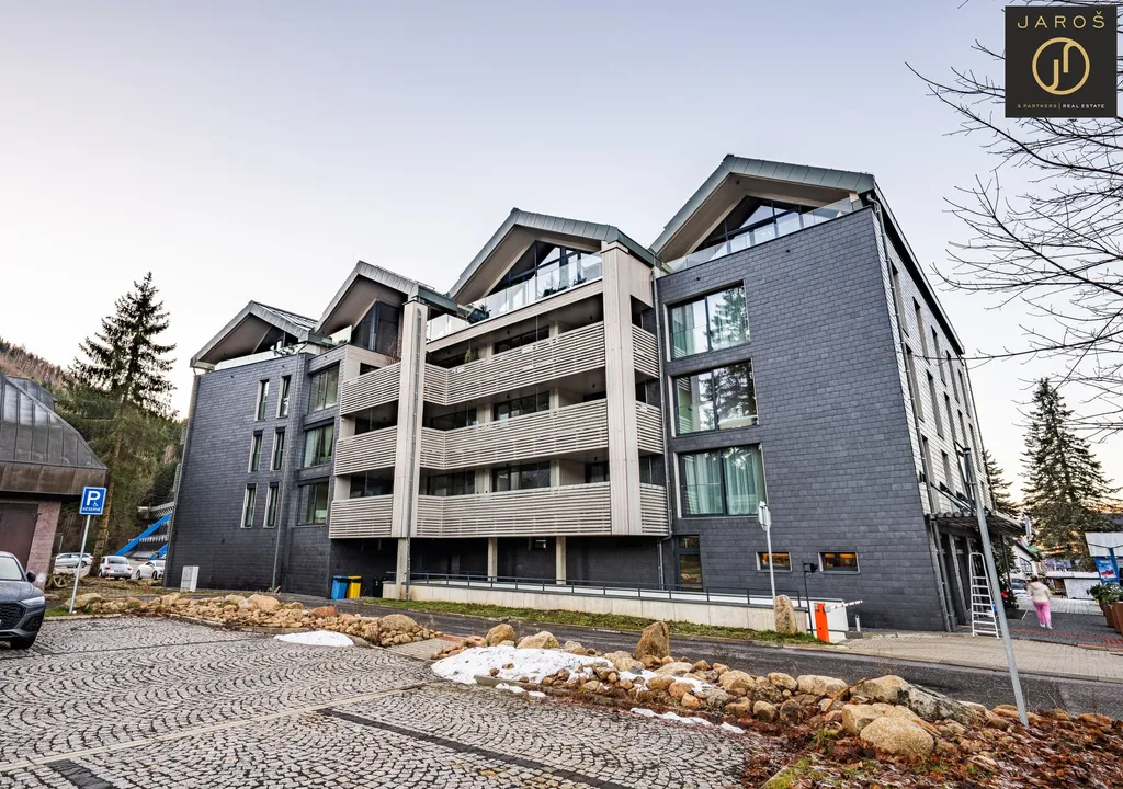 Apartmán se nachází ve 2. nadzemním podlaží moderní novostavby projektu Corso Harrachov, přímo v centru města Harrachov, jen pár kroků od lanovky a ski areálu, s možností obout lyže přímo u apartmánu, dojet na sjezdovku i zpět a zároveň s přímým nástupem na běžkařské tratě.