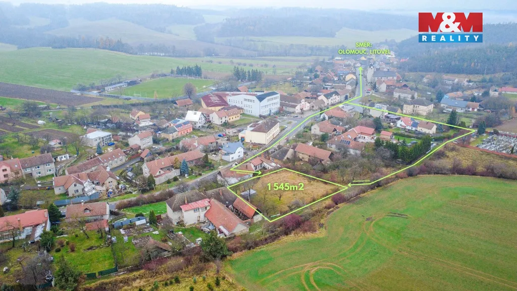 Nabízíme k prodeji slunný pozemek k bydlení o výměře 1 545 m², který se nachází uprostřed malebné hanácké krajiny v obci Přemyslovice (okres Prostějov). Pozemek je dle platného územního plánu vedený jako SV-plochy smíšené obytné venkovské. Na pozemku je již zřízená elektrická přípojka, voda, plyn i kanalizace jsou dostupné na jeho hranici. Součástí pozemku je také kopaná studna, dvě příjezdové cesty a na části se nacházejí vzrostlé ovocné stromy. Díky své velikosti pozemek nabízí možnost rozdělení na dvě samostatné stavební parcely nebo výstavby dvojdomku. Je tedy vhodný jak pro rodinné bydlení, tak i jako investiční příležitost.
