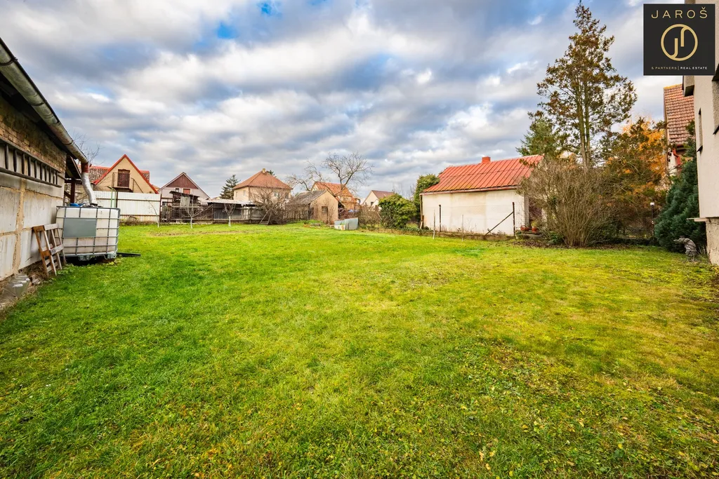 Zahrada je rovná, kompletně oplocená a poskytuje dostatek prostoru pro relaxaci, posezení i zahradničení. Parkování je možné pohodlně v garáži, na pozemku i před domem.